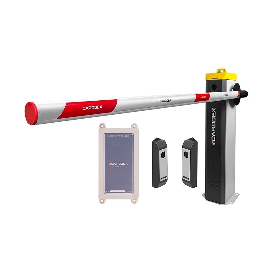 Комплект автоматического шлагбаума; интенсивность 75%; скорость открывания 4 с, 220В AC, напряжение привода 24В; IP54, -25...+55°C, 232х1013х280 мм, 35 кг; в комплекте: тумба автоматического беспружинного шлагбаума RBS-L; стрела для шлагбаума RS-04C-4300 мм, диаметр 50 мм; GSM-модуль G-1000; комплект беспроводных фотоэлементов PR-02.
