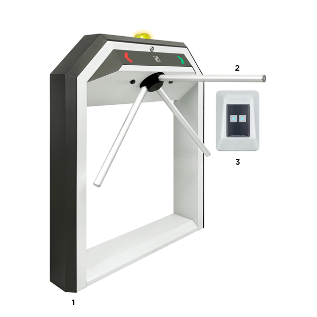 Комплект тумбового турникета предназначен для организации контроля доступа на объекте; ширина прохода 500 мм; 12В DC; 3000 мА; +1...+50°C; IP41; 140х938х1052 мм; 45 кг; в комплекте: тумбовый турникет STR-03, комплект преграждающих планок Антипаника PPA-06R, проводной пульт управления турникетом TW-02.