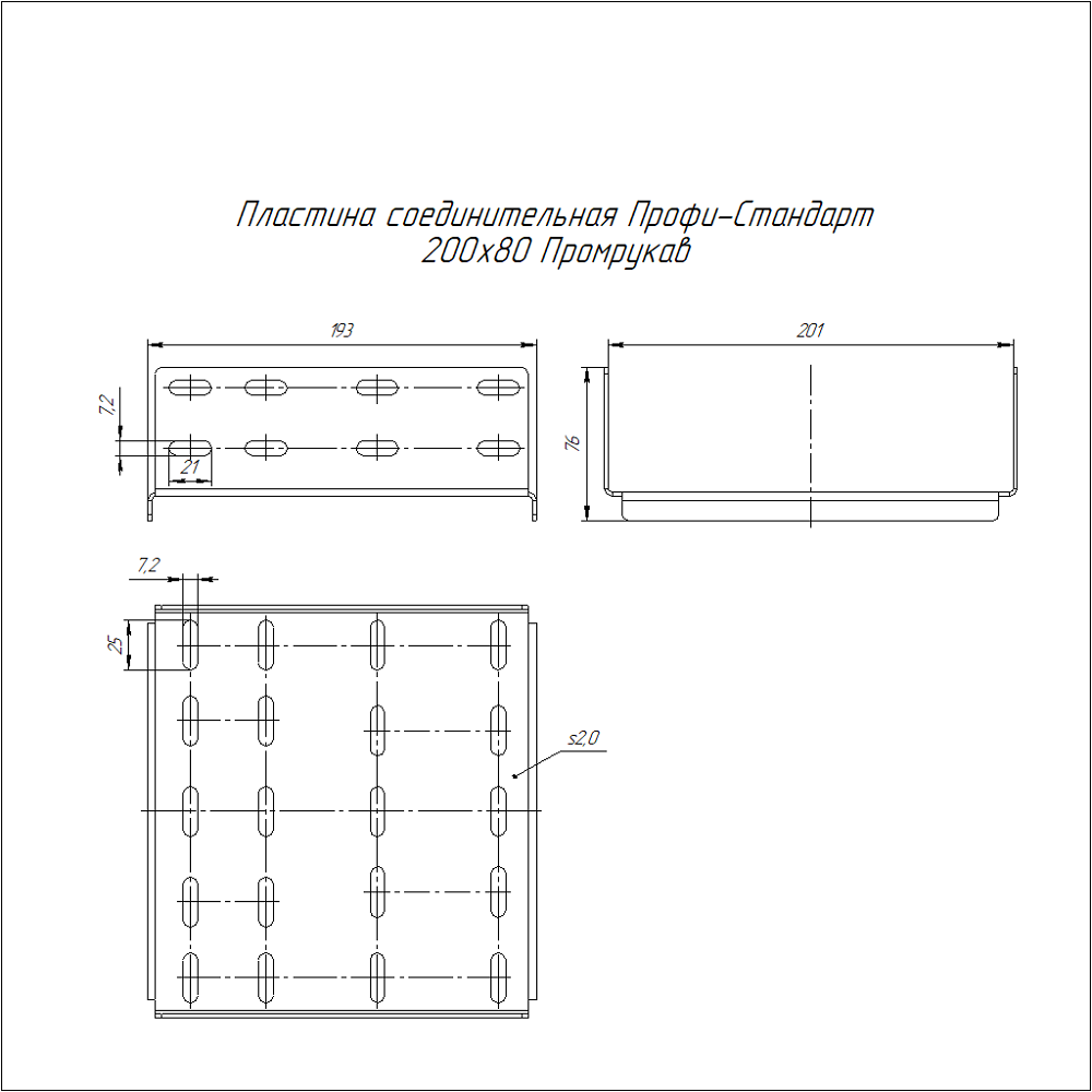 Пластина соединительная Профи-Стандарт 200х80 (2,0 мм) (PR16.21501)