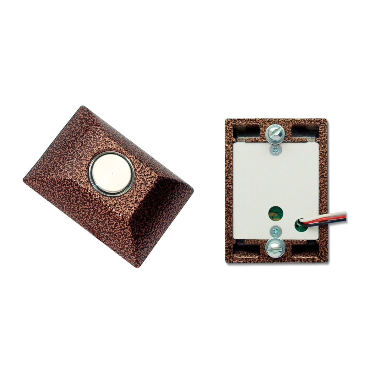 Кнопка открывания двери, металлическая, с подсветкой (световод вокруг кнопки). Цвет-бронза