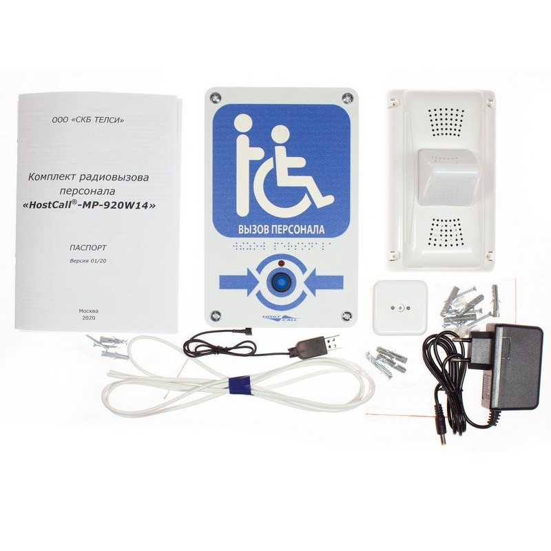 Комплект радиовызова персонала «HostCall-MP-920W14» предназначен для вызова персонала (охранника, продавца и т.п.) магазина, банка или другого социального объекта, чтобы обслужить инвалида на коляске прямо на улице (например, продать лекарство по рецепту) или помочь ему подняться в магазин по лестнице или по крутому ненормативному пандусу.