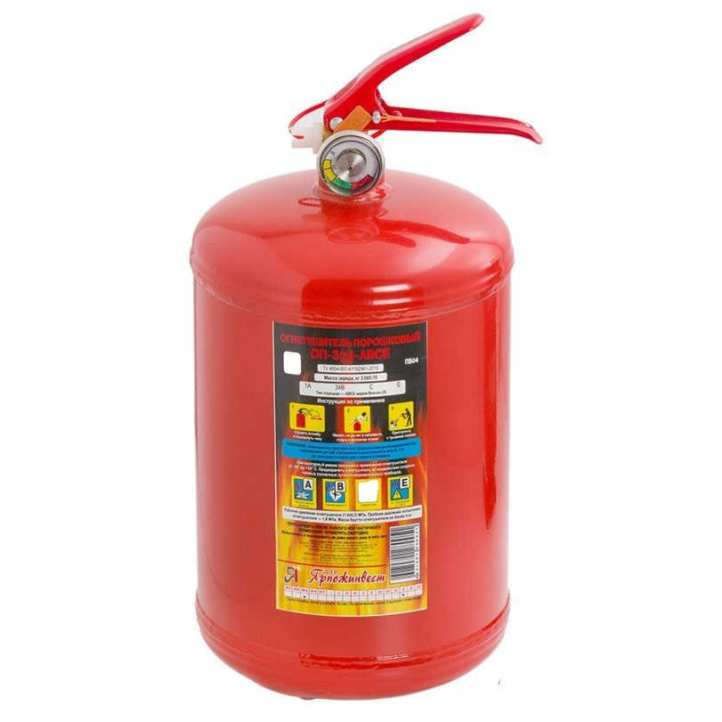 Огнетушитель порошковый закачной, предназначен для тушения пожаров классов А, В, С, Е, масса заряда 3 кг