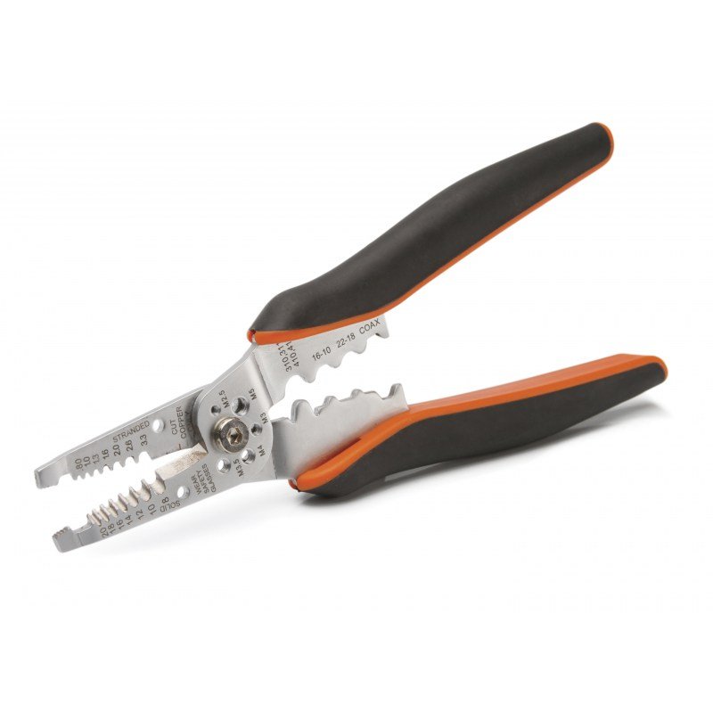 - снятие изоляции и резка проводов сечением 0.5–6.0 мм²; - резка винтов М2.5, М3, М3.5, М4, М5; - опрессовка наконечников сечением 0.5–6 мм² и коаксиальных разъемов; - пассатижи; - отверстия для формирования петель; - семипозиционные прецизионно заточенные лезвия для снятия изоляции; - материал корпуса: нержавеющая сталь; - эргономичные двухкомпонентные рукоятки.Технические характеристики: