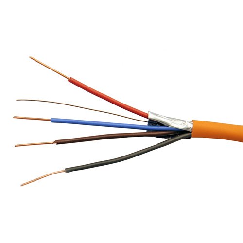 Кабель монтажный для ОПС и СОУЭ, не поддерживающий горения, огнестойкий 2 пары, экранированный, D-внешний = 9,85 мм, сечение жил 0,5 кв мм (оранжевый)