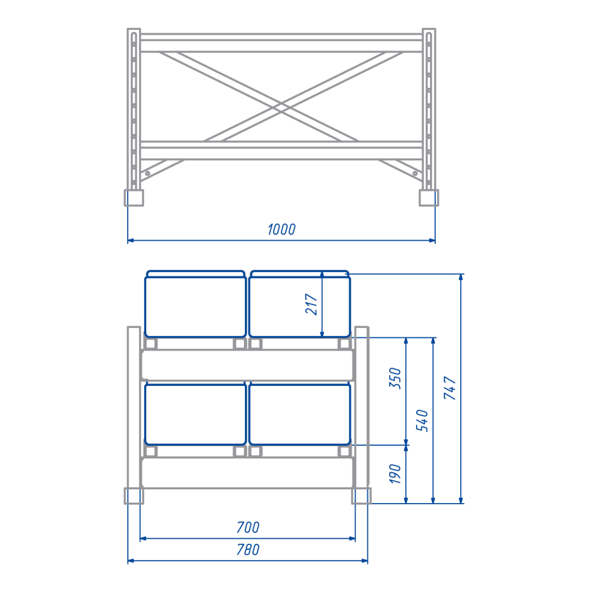 Стеллаж аккумуляторный 1000х780х575, 20 АКБ 100Ач (2 яруса 5х2)