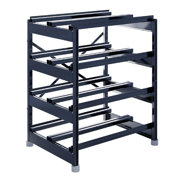 - Сборно-разборная конструкция. Позволяет подстраивать положение поперечных балок, исходя из размеров аккумулятора, а также перемещать ярусы в допустимых диапазонах.