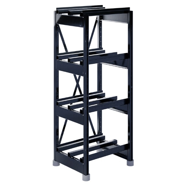 - Сборно-разборная конструкция. Позволяет подстраивать положение поперечных балок, исходя из размеров аккумулятора, а также перемещать ярусы в допустимых диапазонах.
