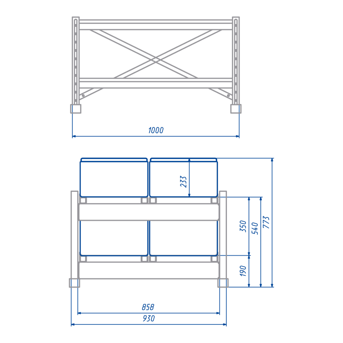Стеллаж аккумуляторный 1000х930х575, 20 АКБ 120Ач (2 яруса 5х2)