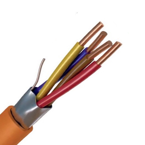 Кабель огнестойкий для систем пожарной сигнализации, экранированный, не распространяющий горение при групповой прокладке, с изоляцией из кремнийорганической резины и оболочкой из полимерной композиции, не содержащей галогенов, не выделяющей коррозионно-активных газообразных продуктов при горении и тлении, минимальный радиус изгиба не менее 10 наружных диаметров, S-жил.0.5 мм , D-внеш.5.35 мм, t-раб.+40…+70°C. Цвет оранжевый.