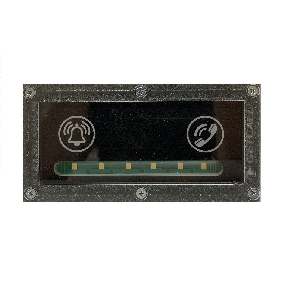 Блок индикации со встроенным источником аварийного освещения для работы в составе системы с диспетчерскими пультами GC-1001D4, GC-1006D5, GC-1009D1, GC-3006DG, серии GC-1036F, световой поток 50 лм, U-пит.12…24 В, I-потр.30 мА, I-потр.max.200 мА, резервный источник питания 3.7 В 18650, t-раб.+5…+45°С, 130х65х13 мм. Врезной. Металлический корпус.