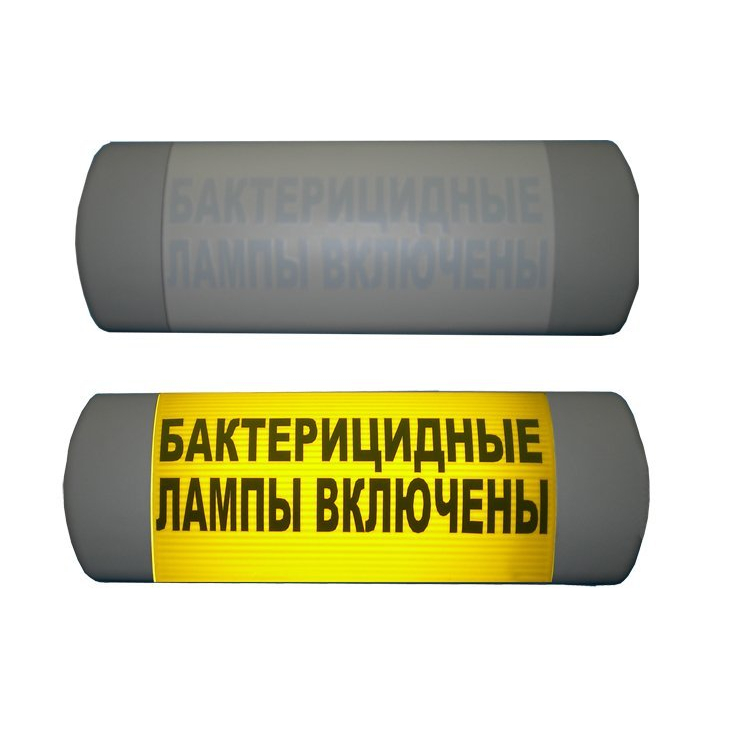 Световое табло Бактерицидные лампы включены, напряжение питания 220 В, количество и мощность ламп OSRAM -Dulux 1х11, габаритные размеры 310x130x60 мм