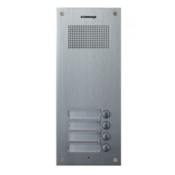 Вызывная панель аудиодомофона на 4 абонента, врезное исполнение, металлические кнопки. Эксплуатация -40...+40°С. Габ.размеры: 315х130х10мм. Цвет: серебристый (алюминиевый корпус). Работает с аб.трубками DP-SS.