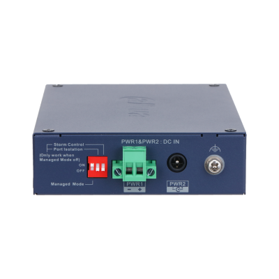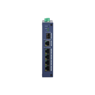 6-портовый коммутатор с функцией облачного управления Порты: 4 RJ45 10/100Мбит/с, 1 RJ45 10/100/1000Мбит/с (uplink), 1 SFP 1000Мбит/с (uplink), питание: 12В(DC), грозозащита: до 6кВ, рабочая температура: -30°С~+65°С, IP30, IK06, монтаж на DIN-рейку