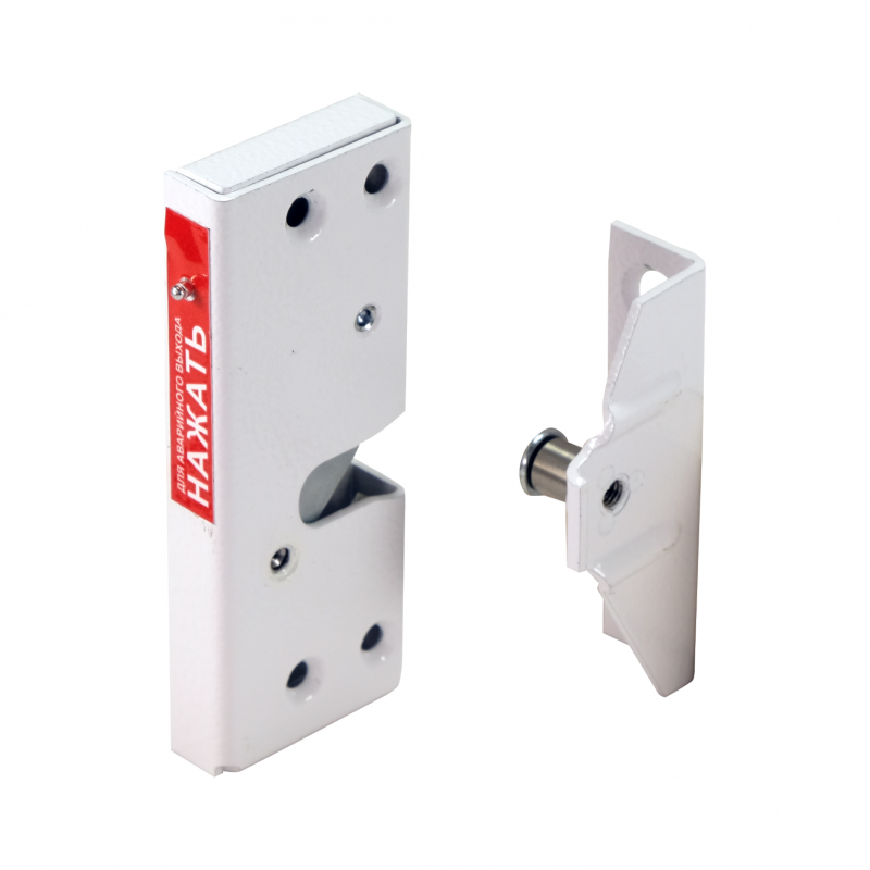 Узкий накладной электромеханический замок. Усилие удержания 300 кг. Нормально открытый, напряжение питания DC 24В/0,05 А, -30...+50°C, цвет - белый