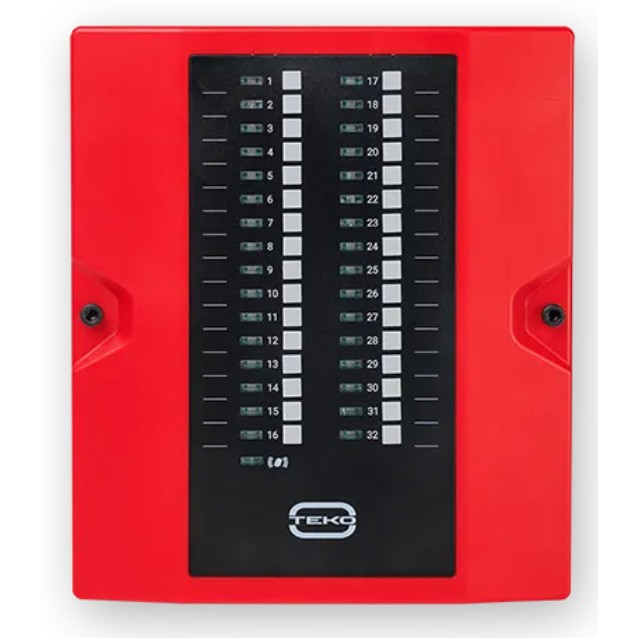 - 32 программируемых трехцветных светодиодных индикатора по ГОСТ Р 53325 для отображения состояния зон, направлений пожарной автоматики, зон оповещения;