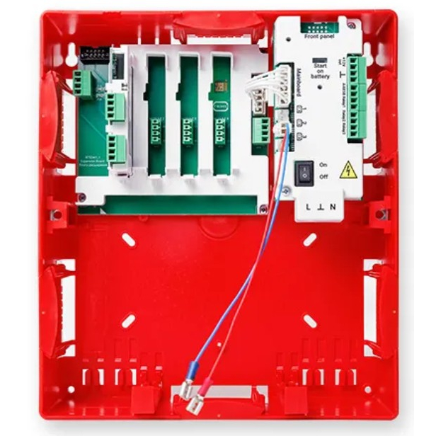 - 4 универсальных слота для установки модулей расширения. В комплекте БИУ модуль интерфейса Астра-Прайм-8552 (обеспечивает подключение к ППКУП по кольцевому интерфейсу RS-485);