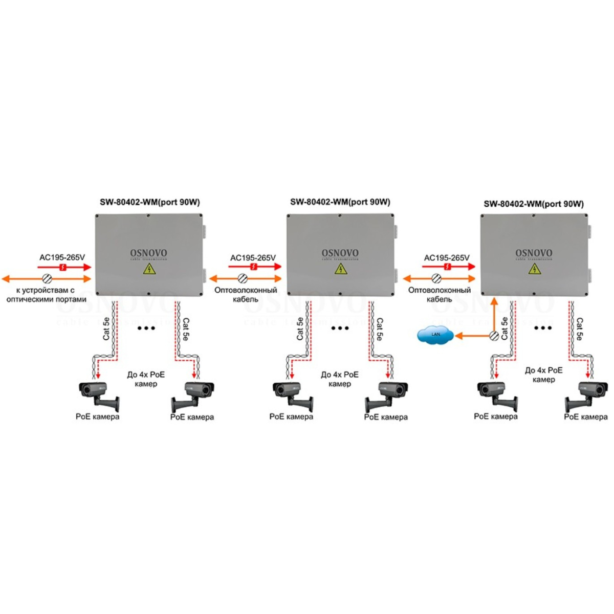 - Дополнительно: PoE 90Вт на порт (IEEE 802.3bt); Встроенная грозозащита 6кВ (8/20мкс); В комплекте оптическая розетка, КДЗС (1 к-т), пигтейлы SM SC/UPC (1к-т) (SFP-модули в комплект не входят); Датчик температуры и влажности в комплекте.