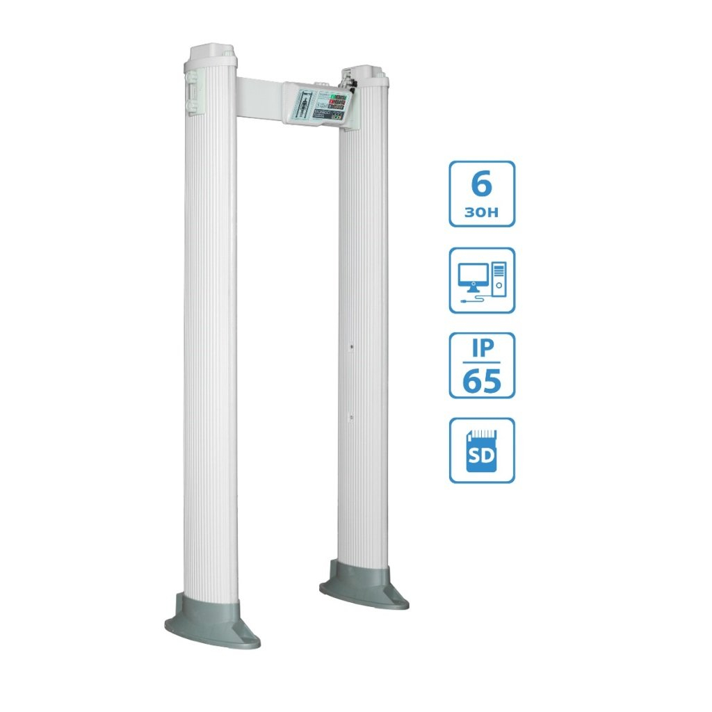 6-зонный арочный металлодетектор. Сверхпрочный с уровнем пылевлагозащиты IP-65. Оснащен новейшей функцией-регистратором событий с SD-card. Наличие сухих контактов, а также три способа подключения к сети (справа, слева, сверху). Безвредны для человека. 2230х1130х300 мм.