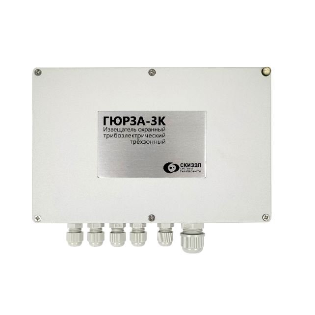 Извещатель охранный периметровый трибоэлектрический, три зоны, длина ЧЭ до 1000 м, ЧЭ-трибокабель ТППэп-10П SKICHEL или ТППбэп-10П SKICHEL (при длине ЧЭ более 500 м), возможна работа в одной зоне трибокабеля и пьезосенсоров, U-пит.8...28 В, I-потр.16 мА. t-раб.-55 ... +55°С.