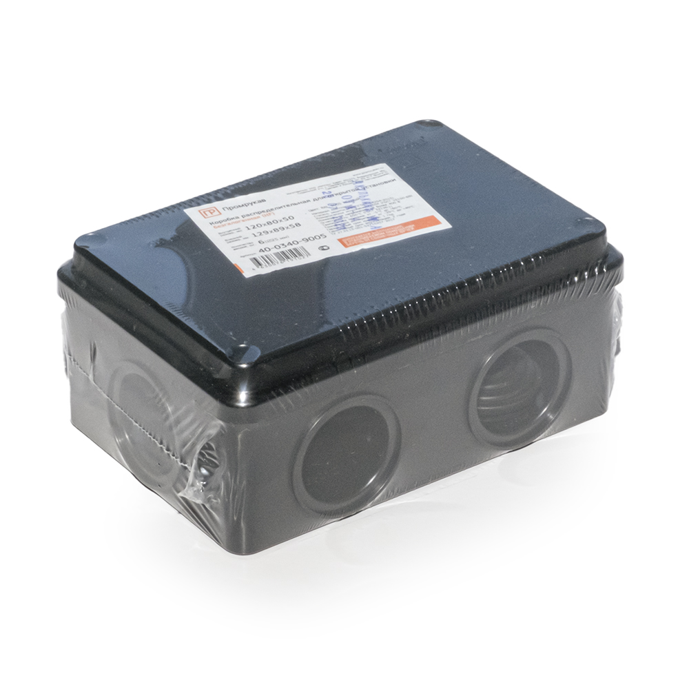 Коробка распределит. для о/п безгал. (HF) черная 120х80х50 (64шт/кор) Промрукав (40-0340-9005)