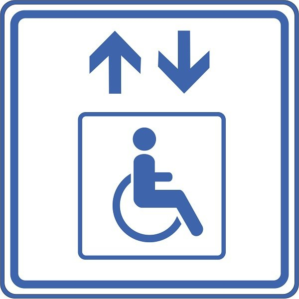Информационно-тактильная табличка Знак лифт для инвалидов-колясочников, рельефная, со шрифтом Брайля, 160х160х5 мм