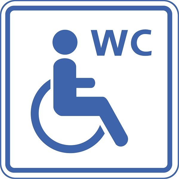 Информационно-тактильная табличка Знак туалет для инвалидов-колясочников, рельефная, со шрифтом Брайля, 160х160х5 мм