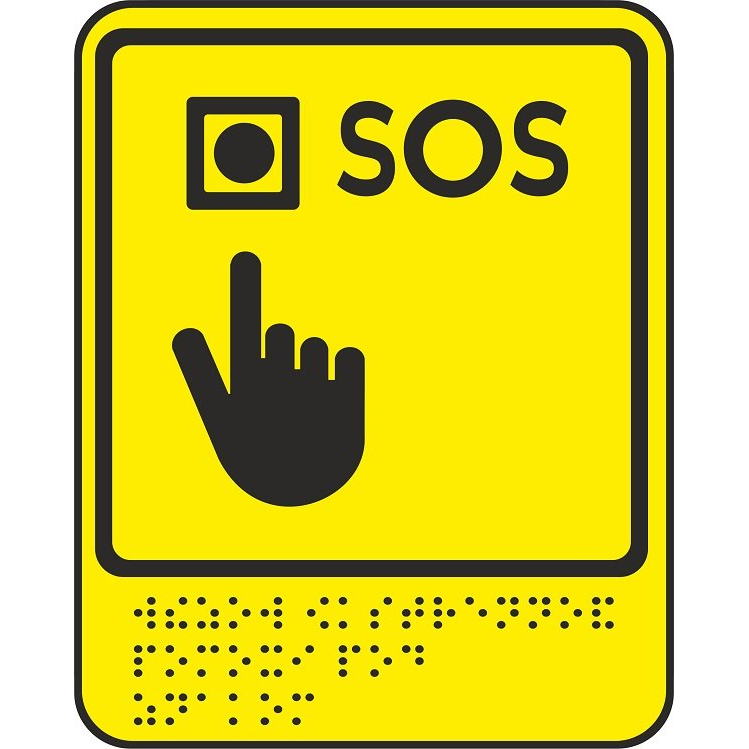 Информационно-тактильная табличка Знак кнопка вызова экстренной помощи, рельефная, со шрифтом Брайля, пластик, 160х200х5 мм