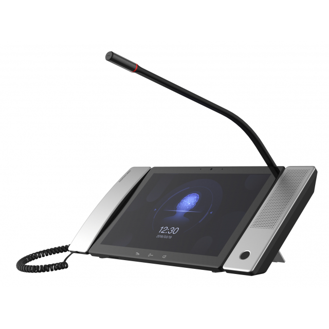 Пульт консьержа. Сенсорный экран. Дисплей 10.1, IPS. ОС: Android 7.1. Разрешение: 1280х800 пикс. Подключение до 10 000 вызывных панелей и мониторов домофона, до 128 IP камер. Ethernet. Камера: 2 МР, угол обзора: 64.1°. Интерфейс: Ethernet, USB, RS485, микрофон на гибкой шее. Поддержка карты памяти до 128 Гб. Функции: прием тревожных сообщений, ожидание вызова, вызов между зданиями, переадресация вызова, многосторонняя внутренняя связь. Управление: HIK-Central/iVMS/3 сенсорные кнопки/механическая кнопка. Протокол: TCP/IP/RTSP/SIP. 12 В DC 12 Вт/PoE, -10°C...+50°C, 292х166х31 мм, 1.28кг. Цвет: Черный