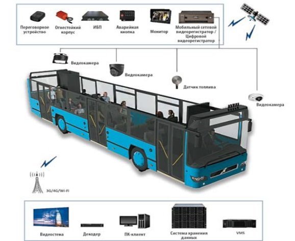 Каждый автобус оснащается видеокамерами (фронтальной и в салоне), мобильным видеорегистратором, ИБП и аксессуарами. Используются видеокамеры с классом защиты не ниже IP67 и функцией WDR, обеспечивающей четкую картинку в условиях повышенной контрастности изображения (например, на входе или у окон).