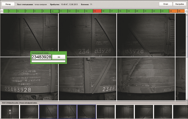 Автоматическое распознавание номеров грузовых и пассажирских вагонов по видеоизобра- жению с определением степени достоверности распознавания. Запись в базу данных для каждого вагона и в целом для состава: распознанного номера, даты и времени прохождения через пост контроля. Ведение синхронной видеозаписи состава и содержимого вагона с помощью камер, направленных в кузов, возможность определения уровня наполнения с помощью тепловизионных камер.